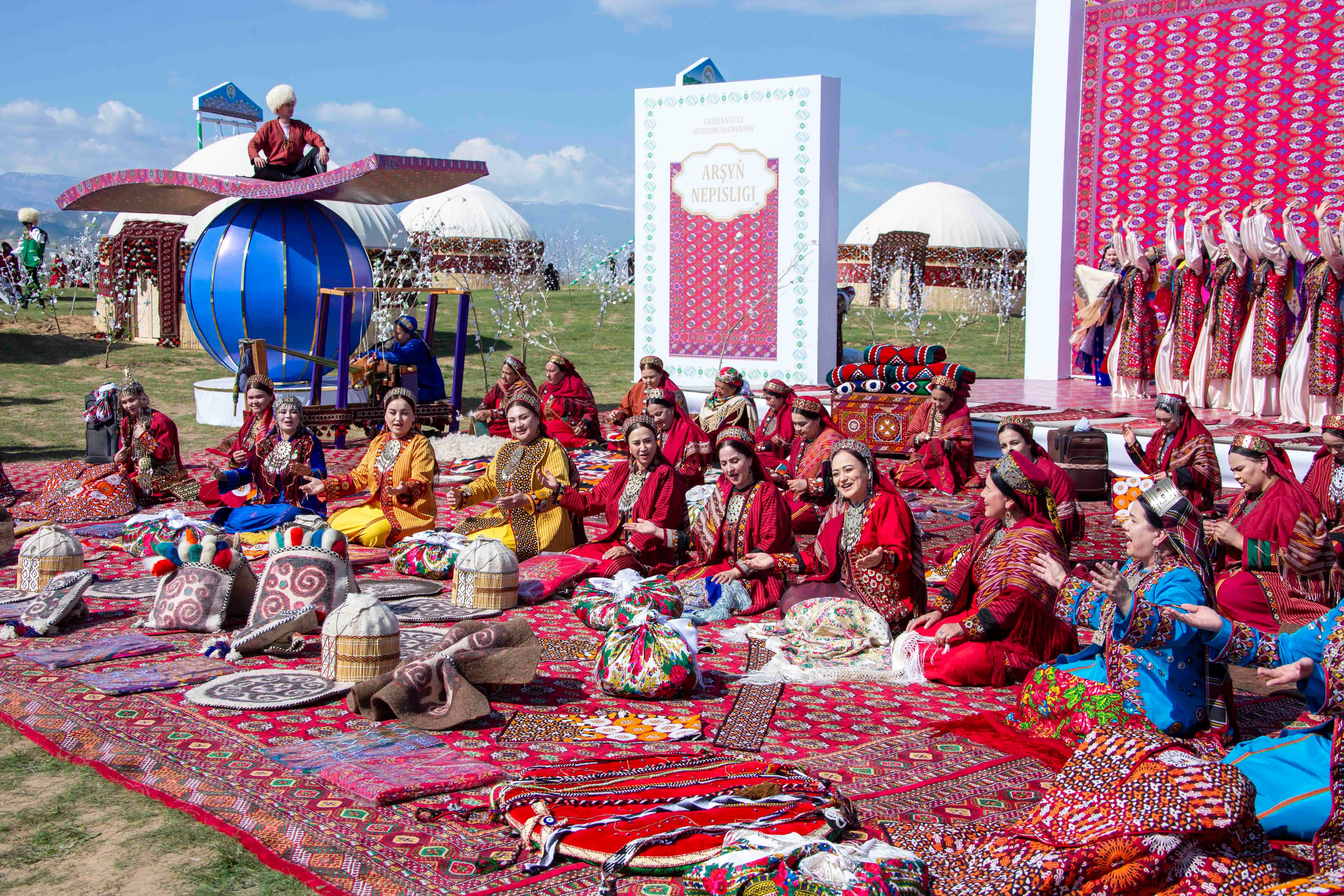 3月21日,在土库曼斯坦阿哈尔州,东说念主们庆祝诺鲁孜节。