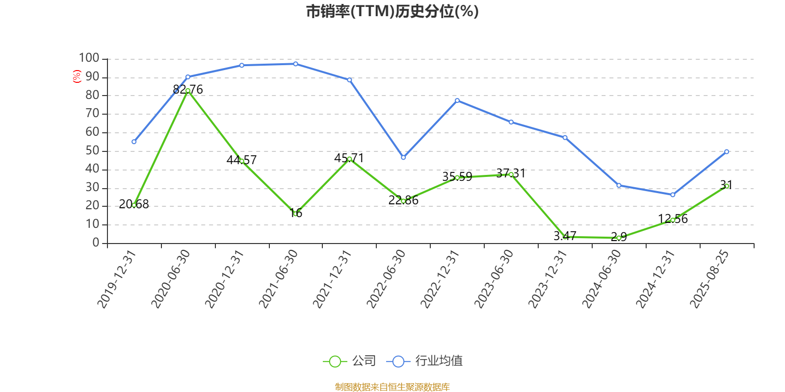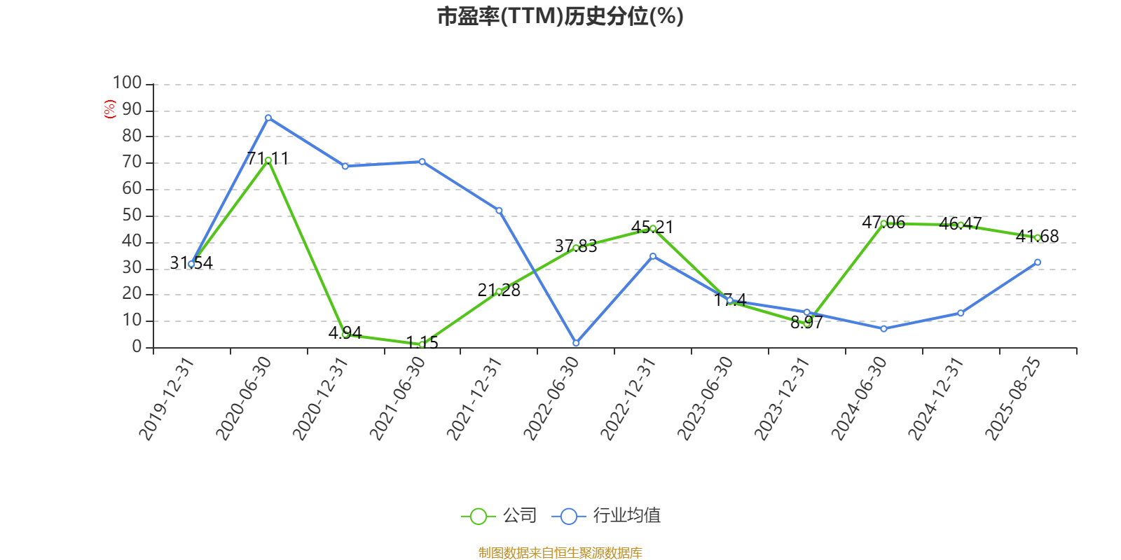 市盈率、市净率为负时真人,不显露当期分位数,会导致折线图中断。