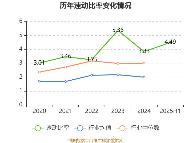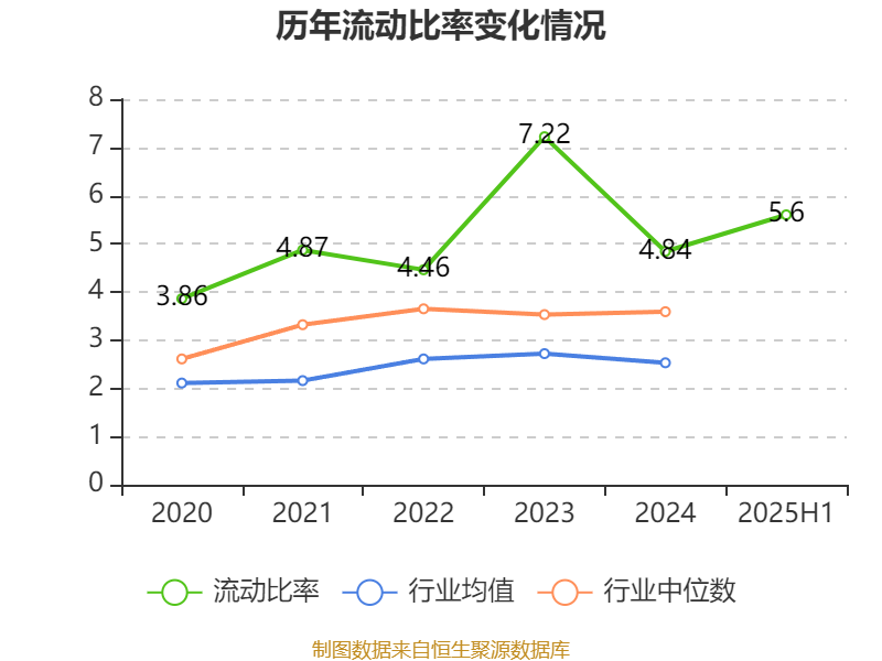 2025年上半年,公司流动比率为5.6,速动比率为4.49。