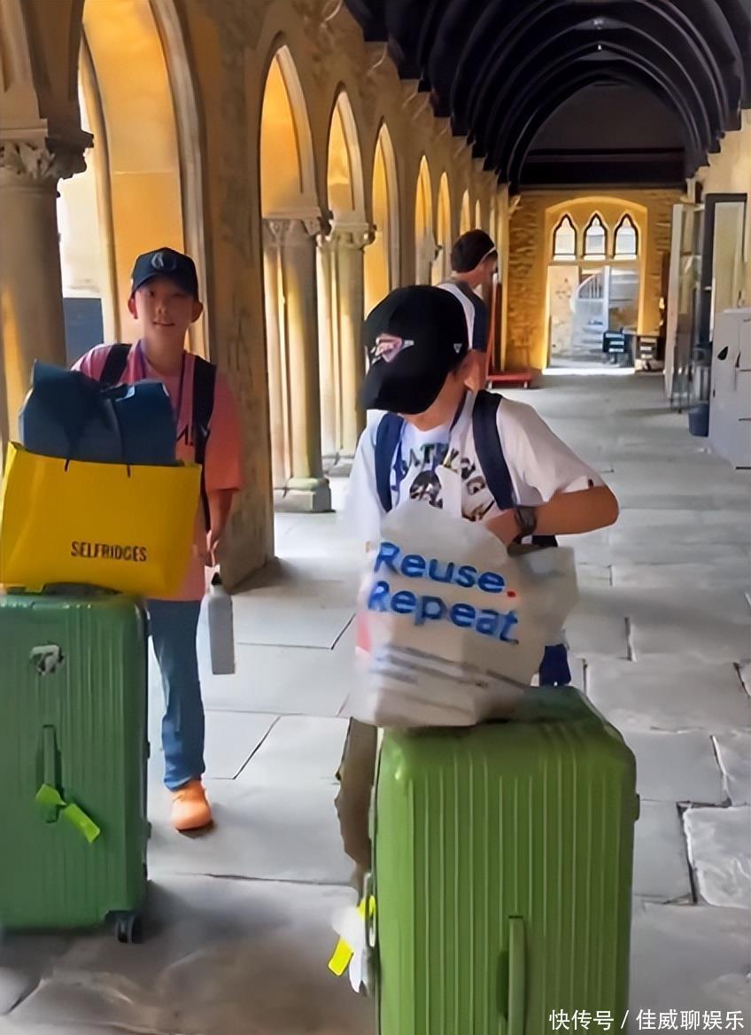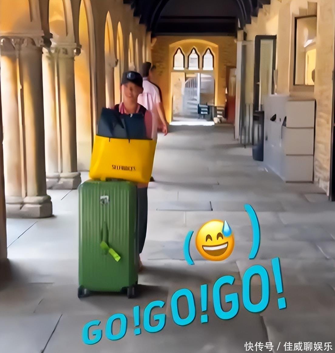 跟在应采儿死后的Jasper则是嚼齿穿龈,非常懂事的推着超大行李箱,手里还拿着大包小包,对着姆妈的镜头吐槽: