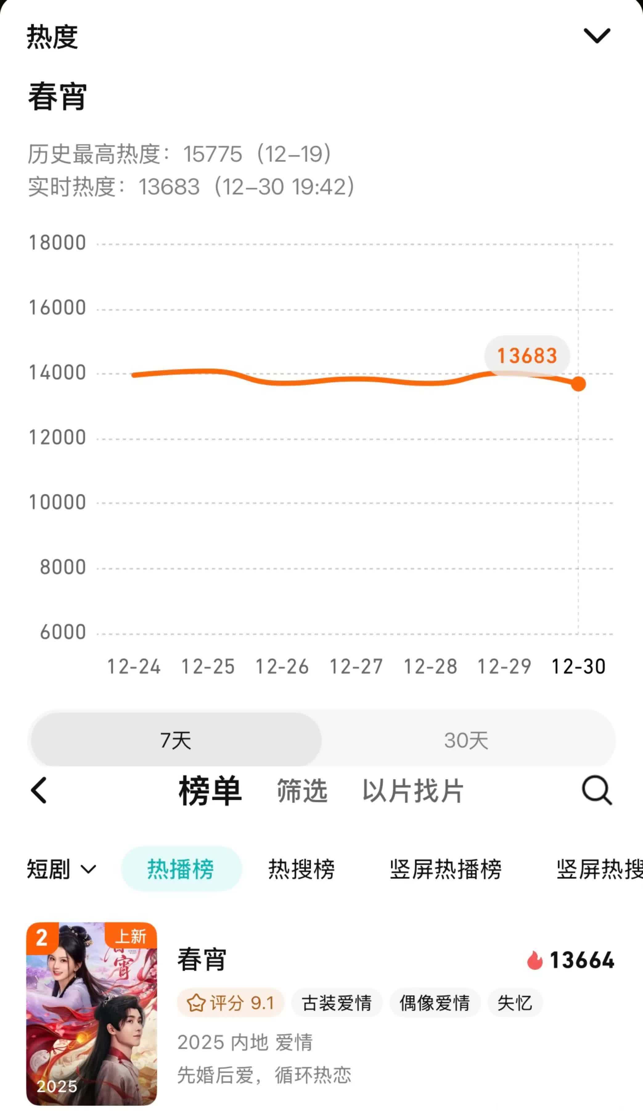 该剧自上线之日起,热度一直飙升,腾讯视频站内最高热度15755,一举荣登腾讯视频短剧热播榜TOP2