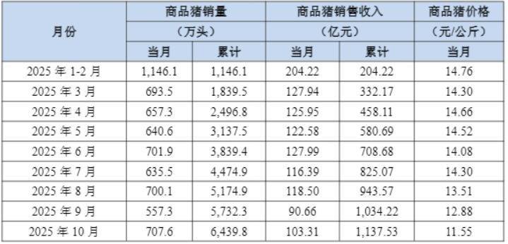 【大河财立方音讯】11月5日ag九游会官网,牧原股份泄漏2025年10月份销售简报。