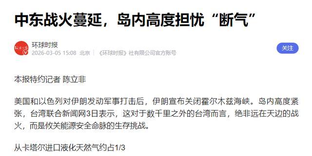 中东海运受阻官方,台岛深陷动力危机,自然气储备只够8天,大陆不要上赶着帮衬。