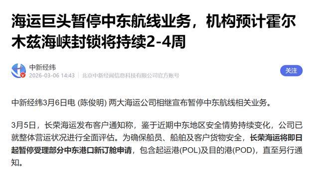 尽管伊朗否定紧闭了霍尔木兹海峡,默示仅仅针对好意思欧以船只,关联词各大海运巨头齐照旧暂停中东航路业务。